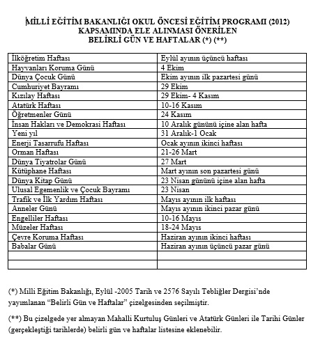 Okul Oncesi Belirli Gun Ve Haftalari