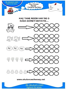 Sayılar çalışma Sayfaları Okul öncesi